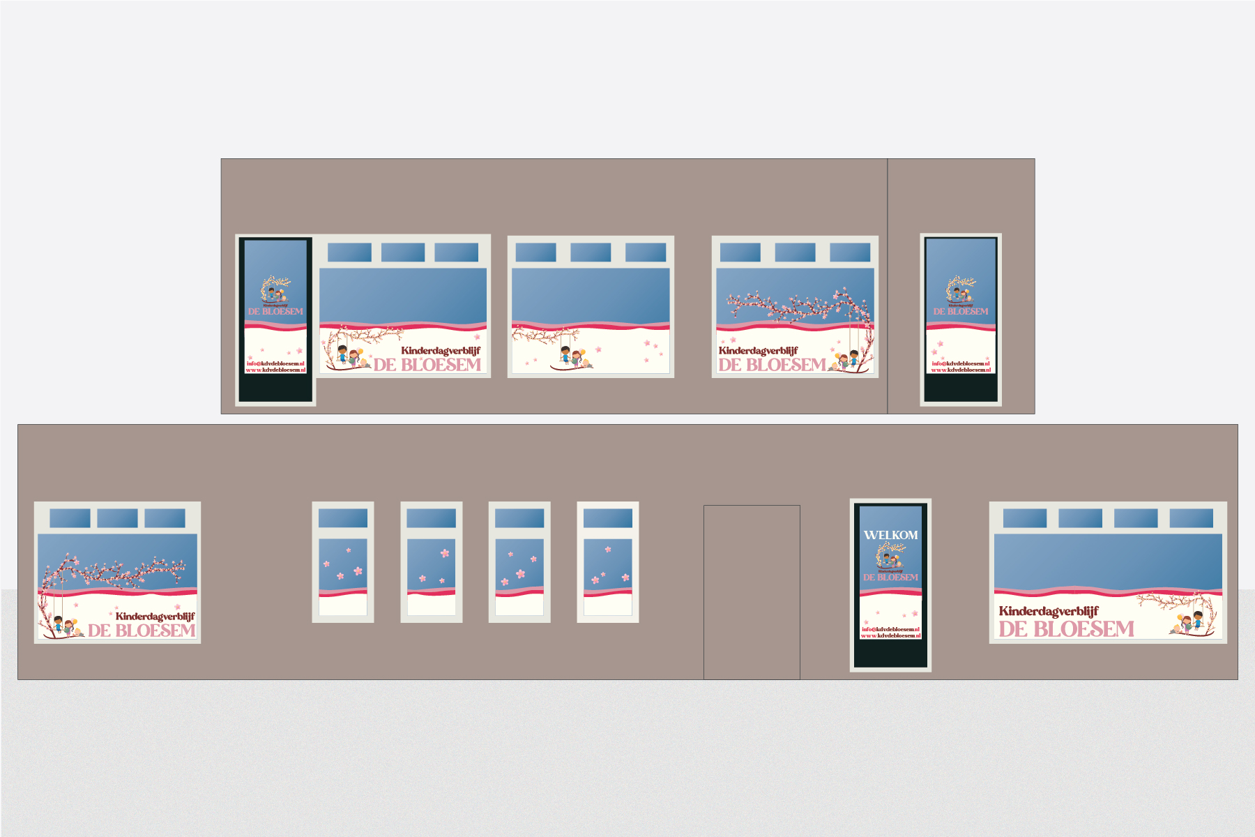 In opdracht van Signpark heb ik voor KDV De Bloesem de raambestickering ontworpen en laten produceren.